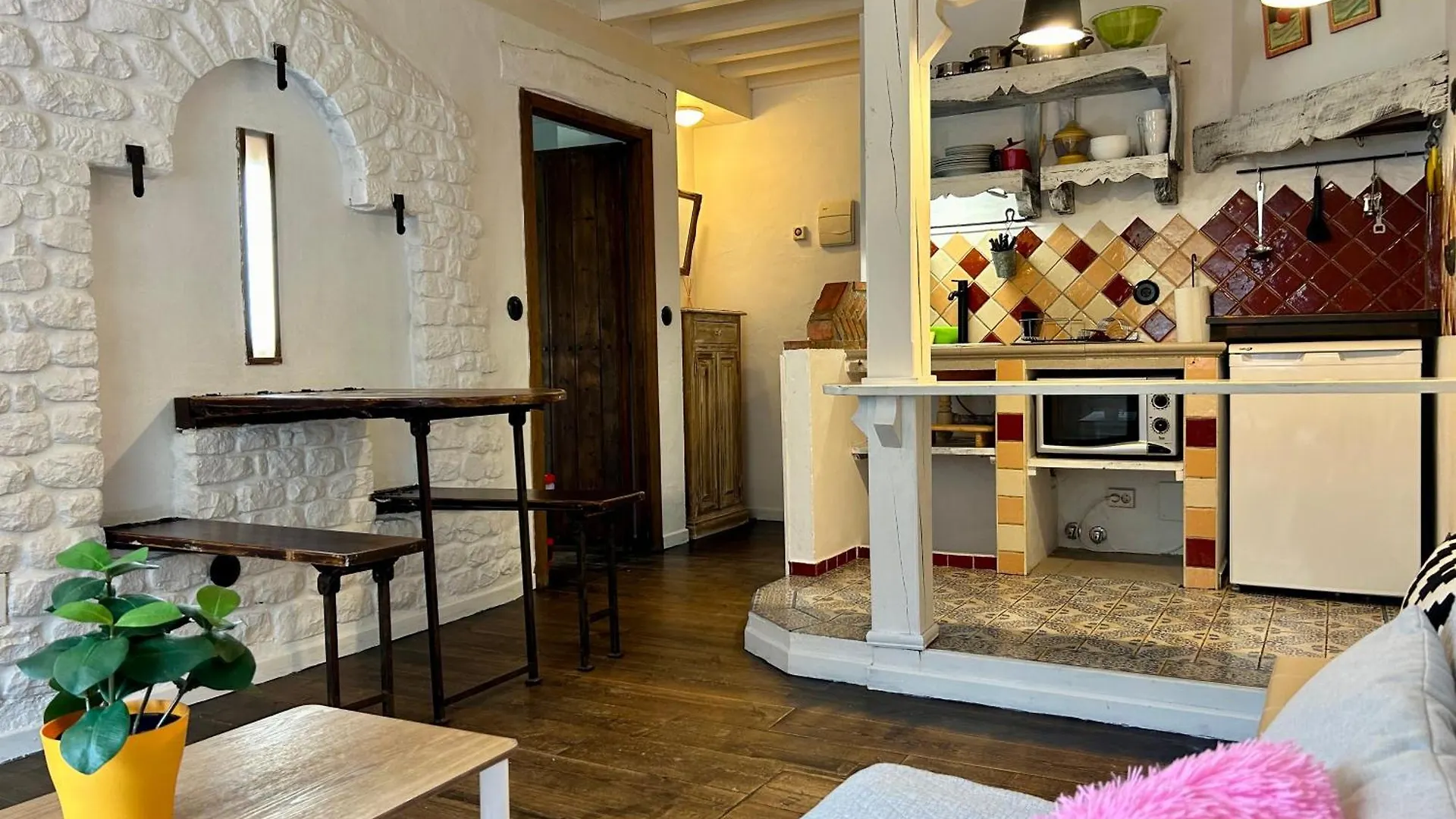 El apartamento está equipado con un horno de microondas y una nevera.